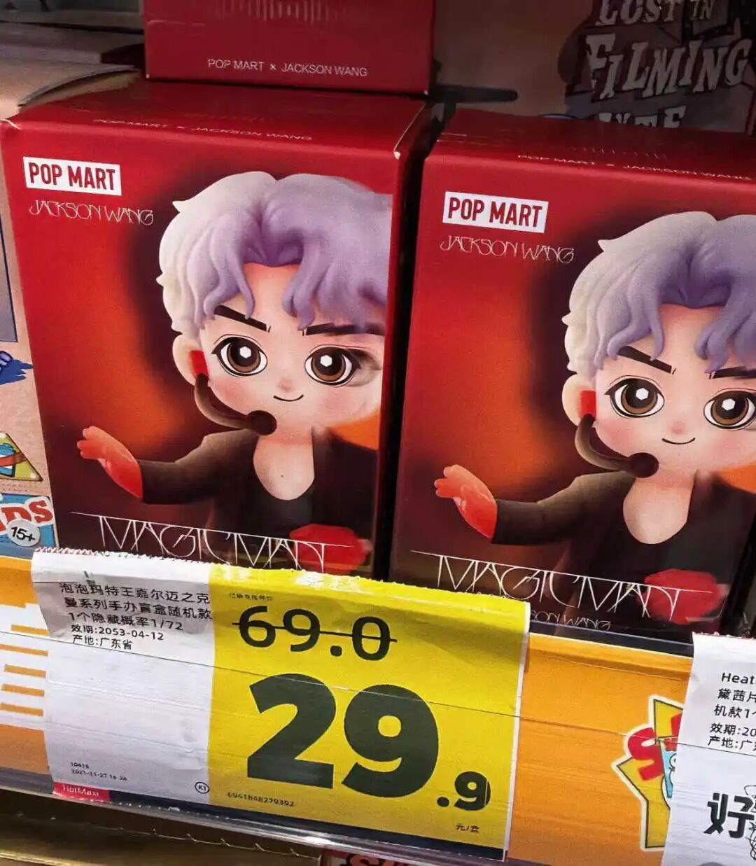 有网友在好特卖看到当年抢破头的王嘉尔联名盲盒,如今以29.9的价格躺在货架上,发出尖锐爆鸣。