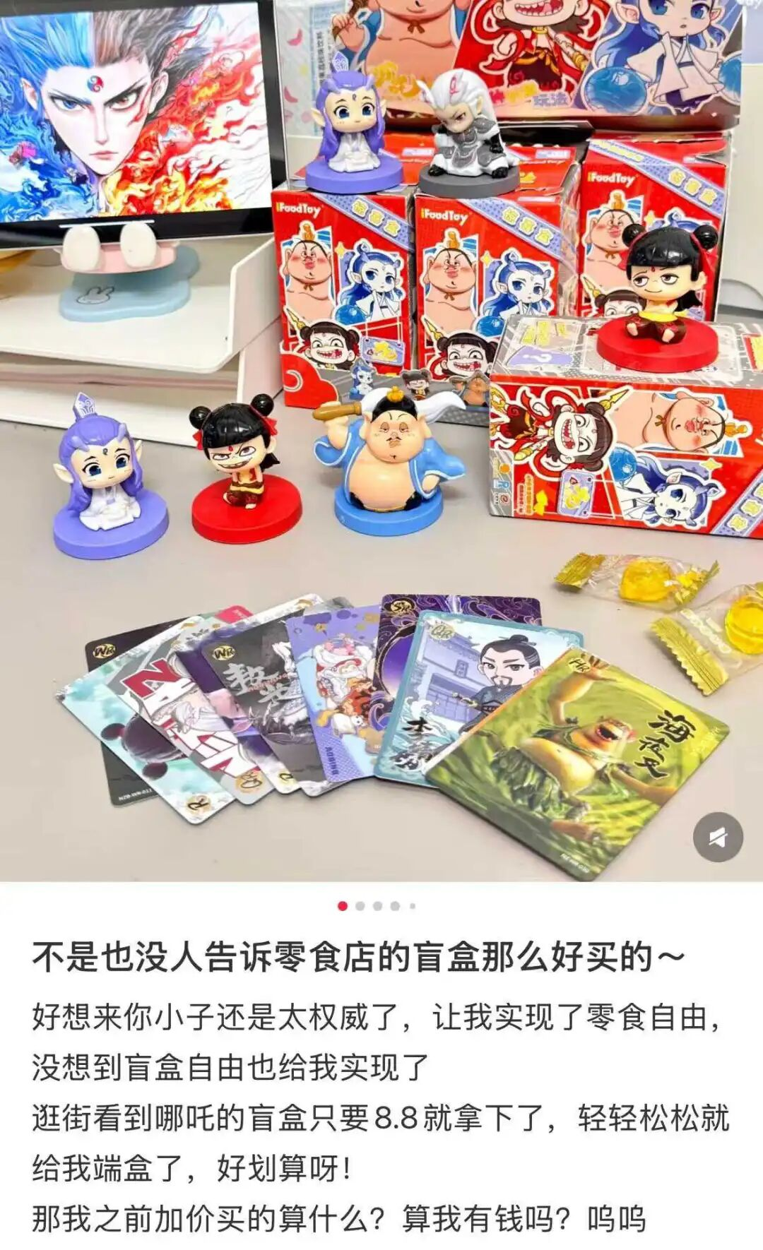 还有网友看到八块八一个的哪吒盲盒,直接流下悔恨的泪水,