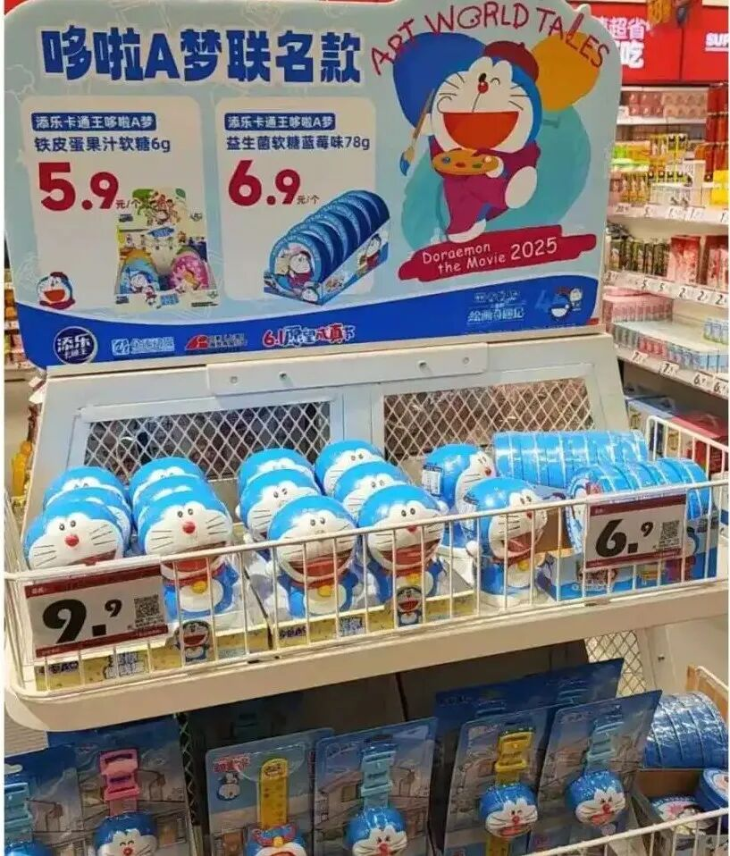 原本以为只有商场里才能看到的潮玩,突然出现在了汤达人和可口可乐中间的货架。
