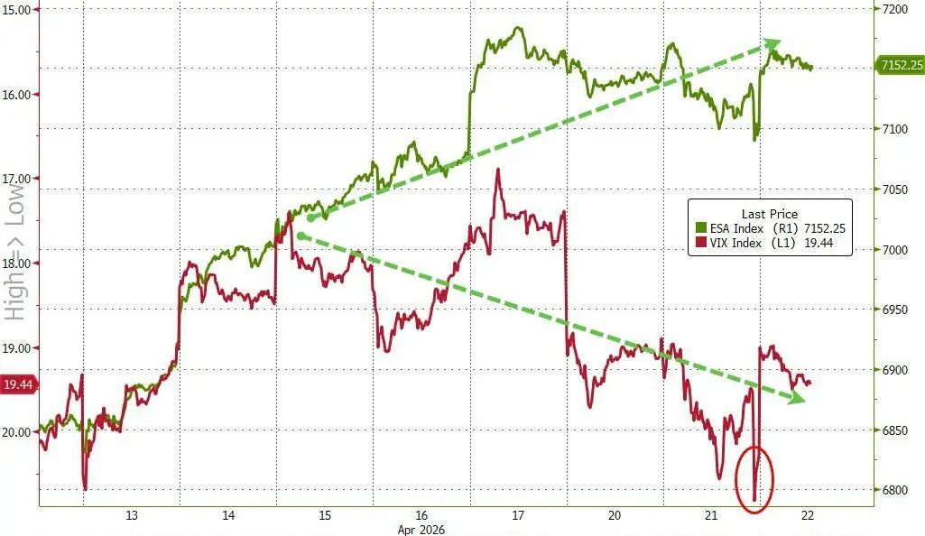 期权市场结构同样在助推这种平静。标普500目前处于正Gamma区间,前端隐含波动率低廉,call期权买盘集中,将指数牢牢锚定在7100点附近。0DTE(当日到期)期权交易者在尾盘激进卖出看跌期权,进一步压制了实际波动率,令纳指在收盘前加速拉升。