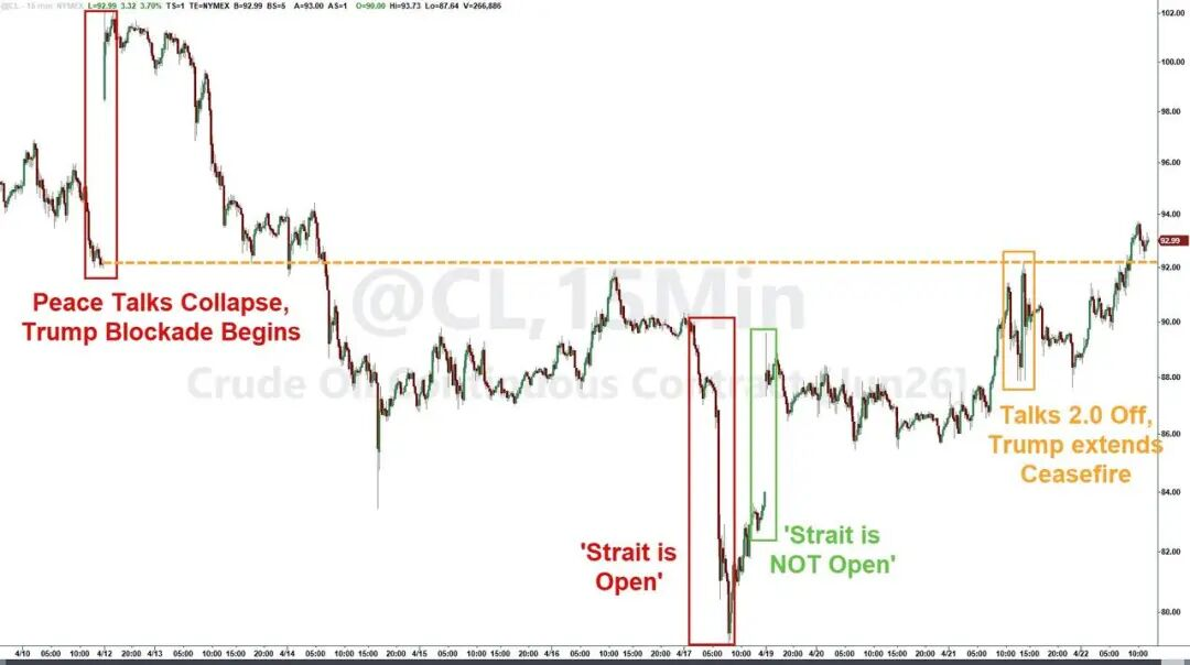 最终结果是,WTI近月期货收复了此前因停火消息引发的全部跌幅,重回对话破裂前水平之上。