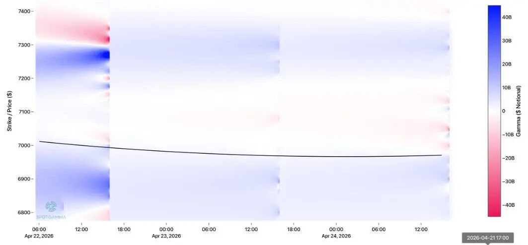 高盛警告称,4月期权到期日后,正Gamma对冲缓冲变薄,一旦标普500跌破7050点,期权结构将加速向下运动,主要支撑位在7000点,阻力位在7125至7150点。