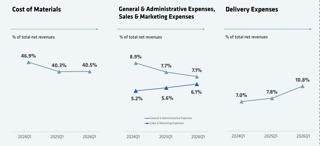 瑞幸第一季度经营费用率从去年同期的91.7%升至94.0%。公司解释,这一变化主要与配送费用占收入比例上升有关。外卖平台确实帮助瑞幸卖出了更多咖啡,但这部分增长并不是免费的。