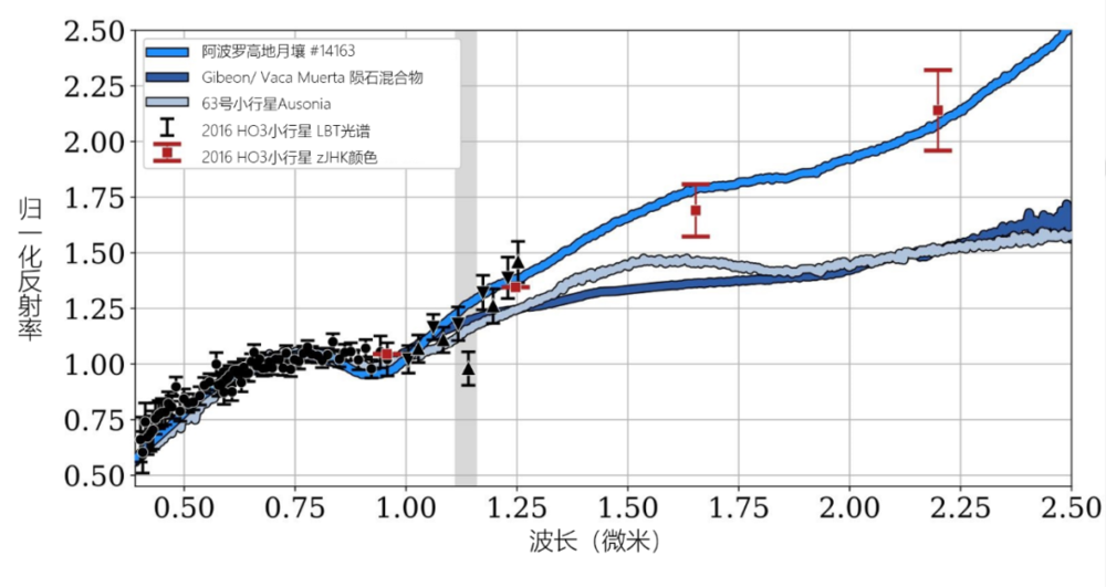 这次科学家就利用了LBT和LDT望远镜对这颗小行星进行了可见光和近红外波段的光谱测量。发现这颗小行星总体上属于S型小行星,但其光谱曲线在近红外波段的斜率与其他小行星都不相同,反而与月球岩石的光谱曲线更为相似。