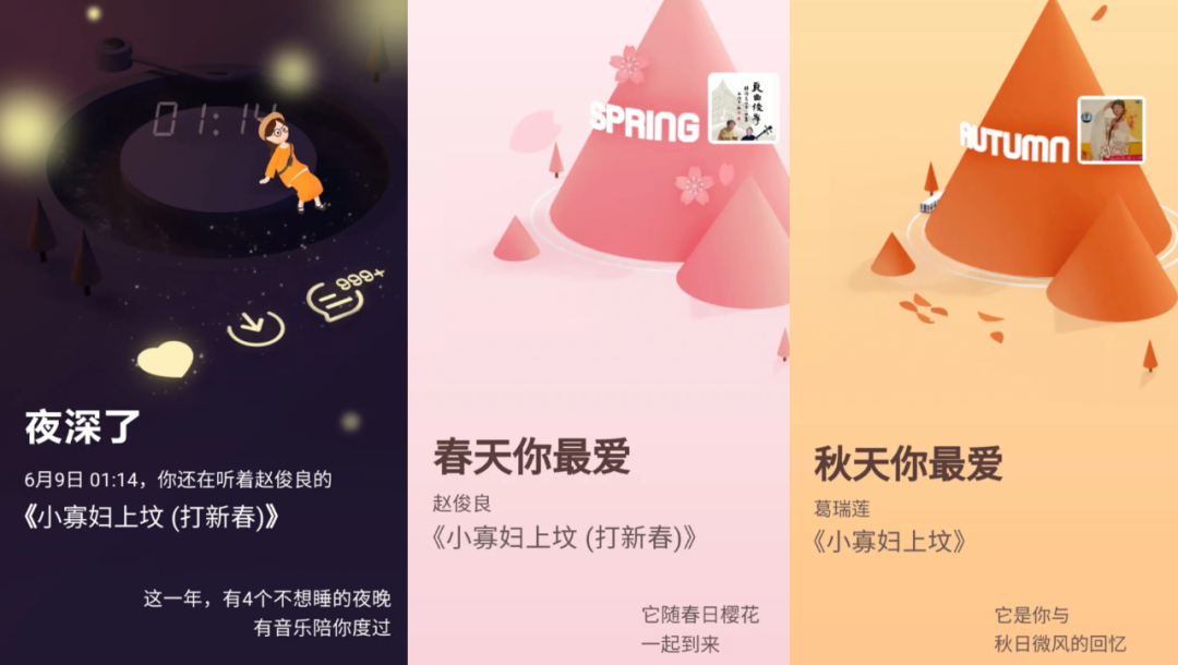 这类年度报告,不仅能提醒你“听歌最晚的时间”,还能想起“某天重复听过N次的歌”等等……而对于爱回忆的人来说,音乐才是唤起往事的最好工具。