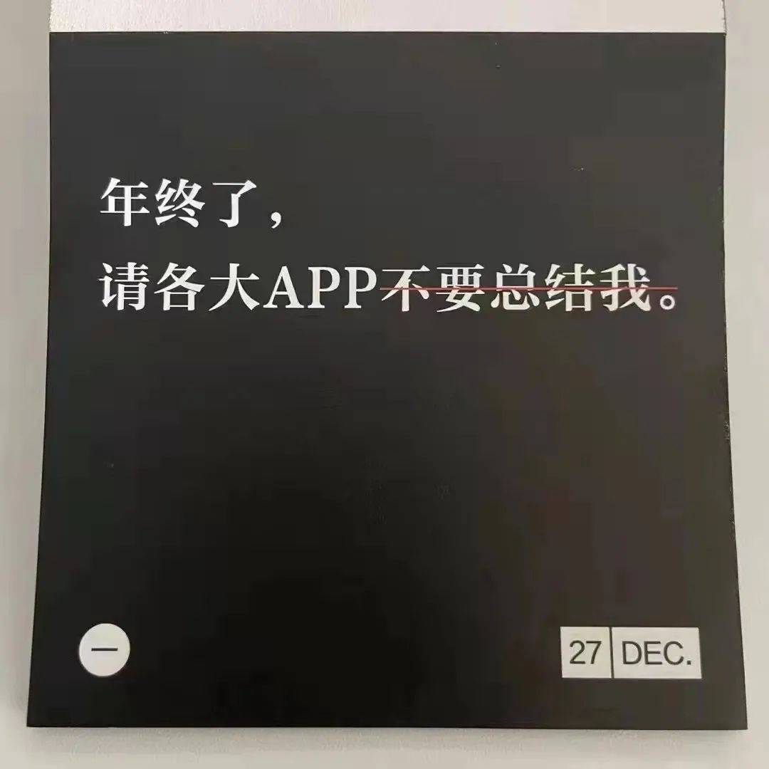 但更多的可能是,大伙在年末要面对的各平台“总结”实在太多了,在最初的新鲜感过去后,实在是总结不动了。毕竟,用自己的个人数据帮平台打广告,转多了总有些不对劲……