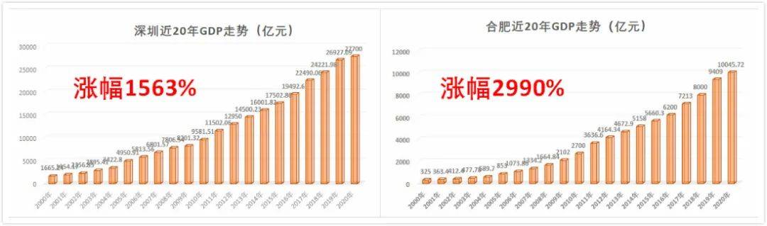 2020年合肥,跨入了全国万亿GDP俱乐部,相比2001年,2020年合肥GDP增幅达到夸张的2700%。