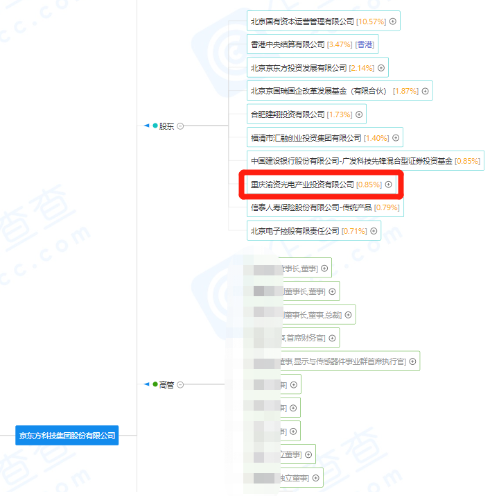 现在的京东方股权列表里,重庆排第8位。