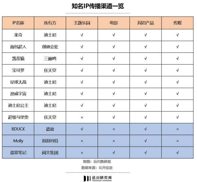 而国际上的顶级IP主要来自于美国与日本,迪士尼的米奇IP已经运营了93年,三丽鸥的凯蒂猫与日本家喻户晓的面包超人IP运营也均在40年以上,长期的IP运营给IP积累了大量的受众,在传播方面自然是更胜一筹,也具备成为顶级IP的基础条件。