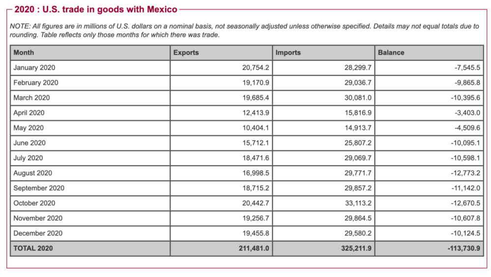 图:2020年美国对墨西哥商品贸易逆差大幅跳涨