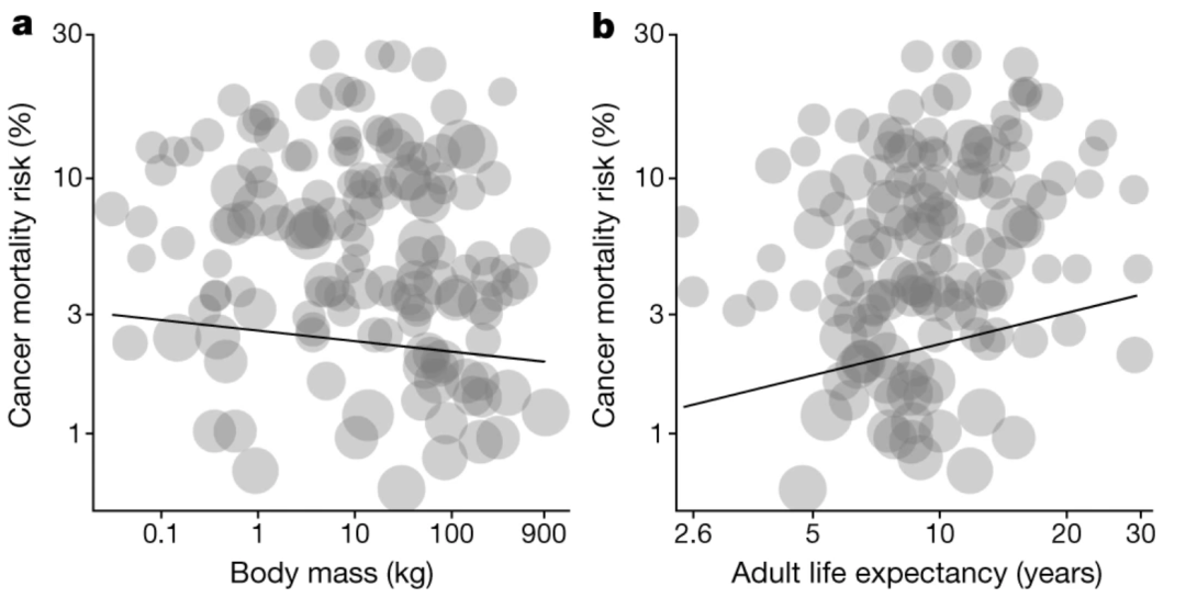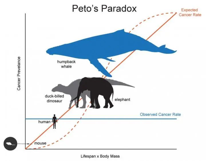 在物种水平上,癌症发病似乎与生物体的细胞数量是无关的。这就是著名的Peto悖论。