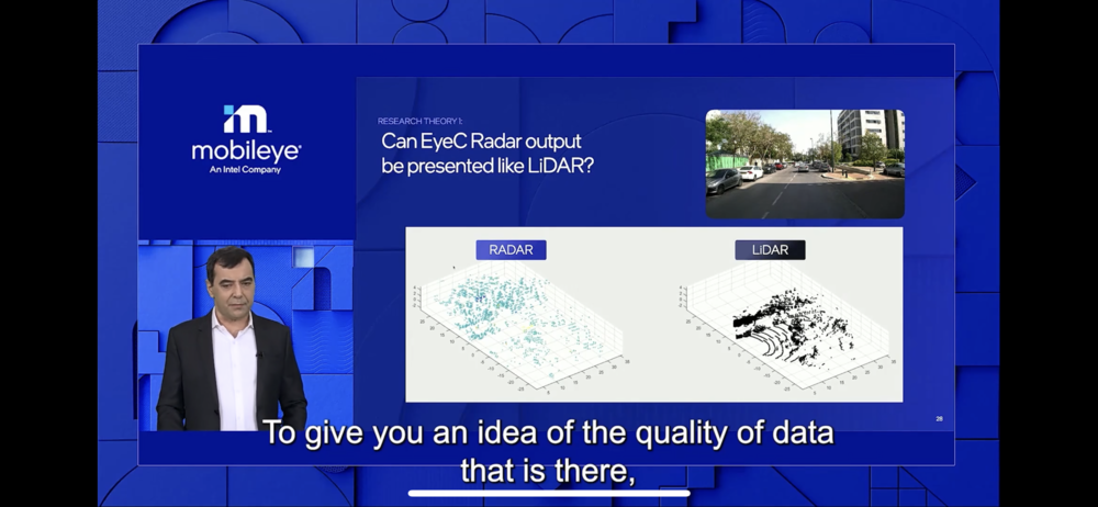 Mobileye训练了神经网络使用的数据是传统雷达input与激光雷达output,当把雷达和激光雷达放在一起,用激光雷达作为神经网络输出,将雷达映射到激光雷达上,两边效果基本一样