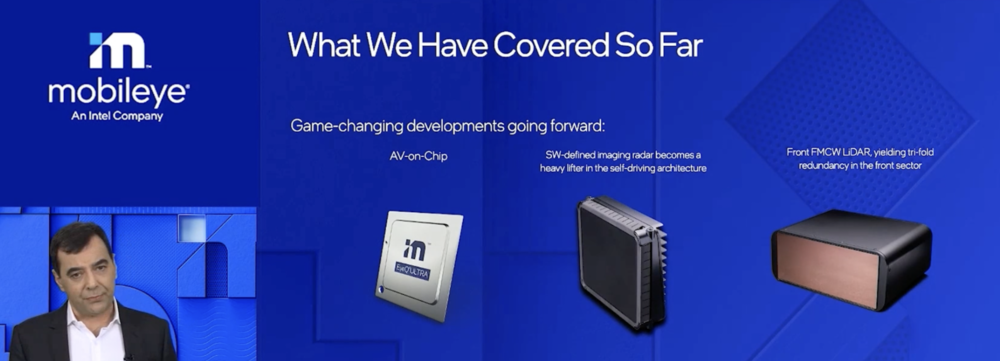 这三个未来会发布的新产品——L4自动驾驶芯片(左)、被重新定义的成像雷达(中)以及FMCW激光雷达芯片,被Shashua称为未来可能会改变游戏规则的产品。