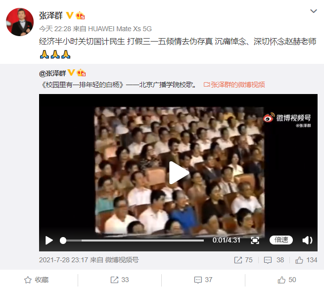 @界面新闻【央视主持人赵赫去世】据著名主持人@张泽群 微博,央视主持人赵赫去世。