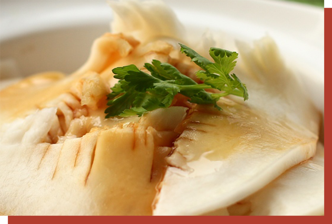 对温州人来说盘菜可不止这一道热菜。生渍盘菜,才是正宗温州菜“食生”的精髓。将这颗圆白的 “扁萝卜”腌制成盘菜生,工序并不繁杂 —— 一颗盘菜去掉蒂部,削外皮,用蓑衣刀法,刃过雪肉细打薄片,雪肌片片相辅相依、难舍难分,形似一盏燕窝。加糖、盐、白醋、花椒,以石块压制, 腌制个三、四日后,自缸中取出,再淋入生抽、麻油、香醋、白糖做个调味。模样浑然似玉,通体莹透雪亮,食之脆口鲜爽,麻香、浅辛、甜脆几种滋味在口腔中碰撞动荡,让人在层次分明的咀嚼下,连连下筷,直到碟中再也找不到一片白雪肉片,才肯罢休!