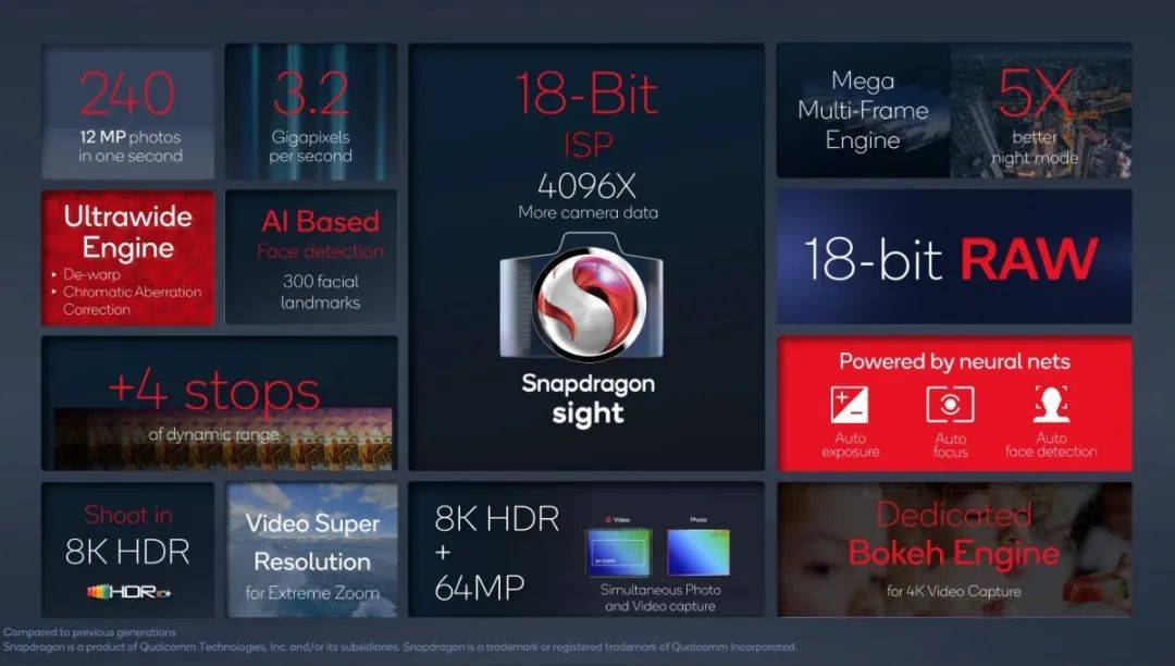 它包含了三个 18-bit 的 ISP( 图像信号处理器 ),能以每秒 32 亿像素的速度捕捉达前代 4000 多倍的影像数据。