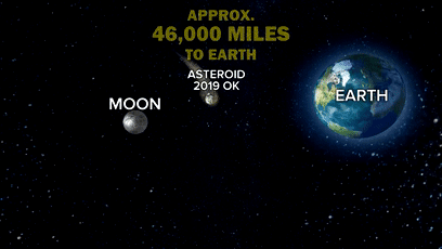 (图为“2019OK”与地球“擦肩而过”的过程)