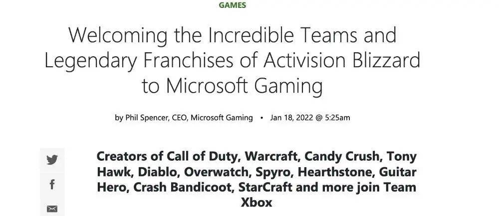 除了收购价格前无古人,微软保密工作做得也非常好,几乎没有走漏一点风声。前脚刚看到“微软可能收购”,后脚微软就自己官宣。从资本市场到新闻媒体再到广大游戏玩家,大家都非常的莫名其妙的震惊:这么大的事,微软就自己决定了?