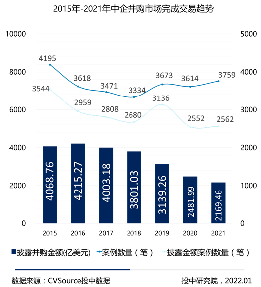 图3- 2015年-2021年中企并购市场完成交易趋势