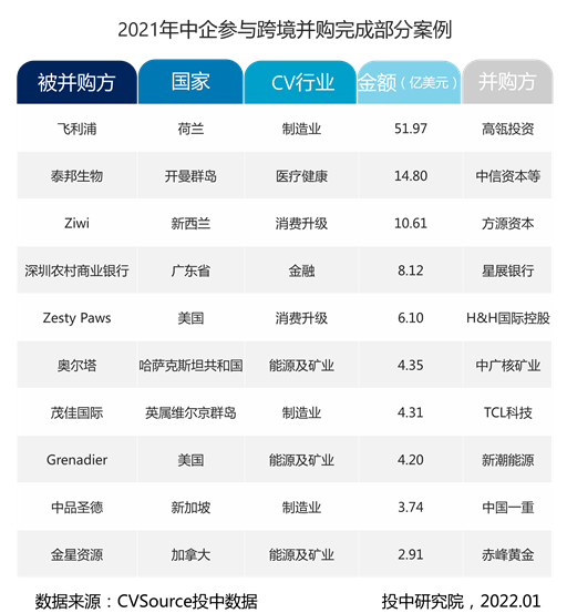 3. 跨境完成并购案例
