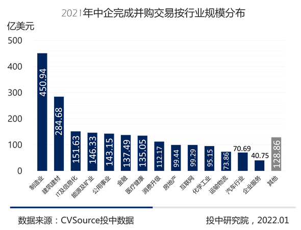 图9- 2021年中企完成并购交易按行业规模分布