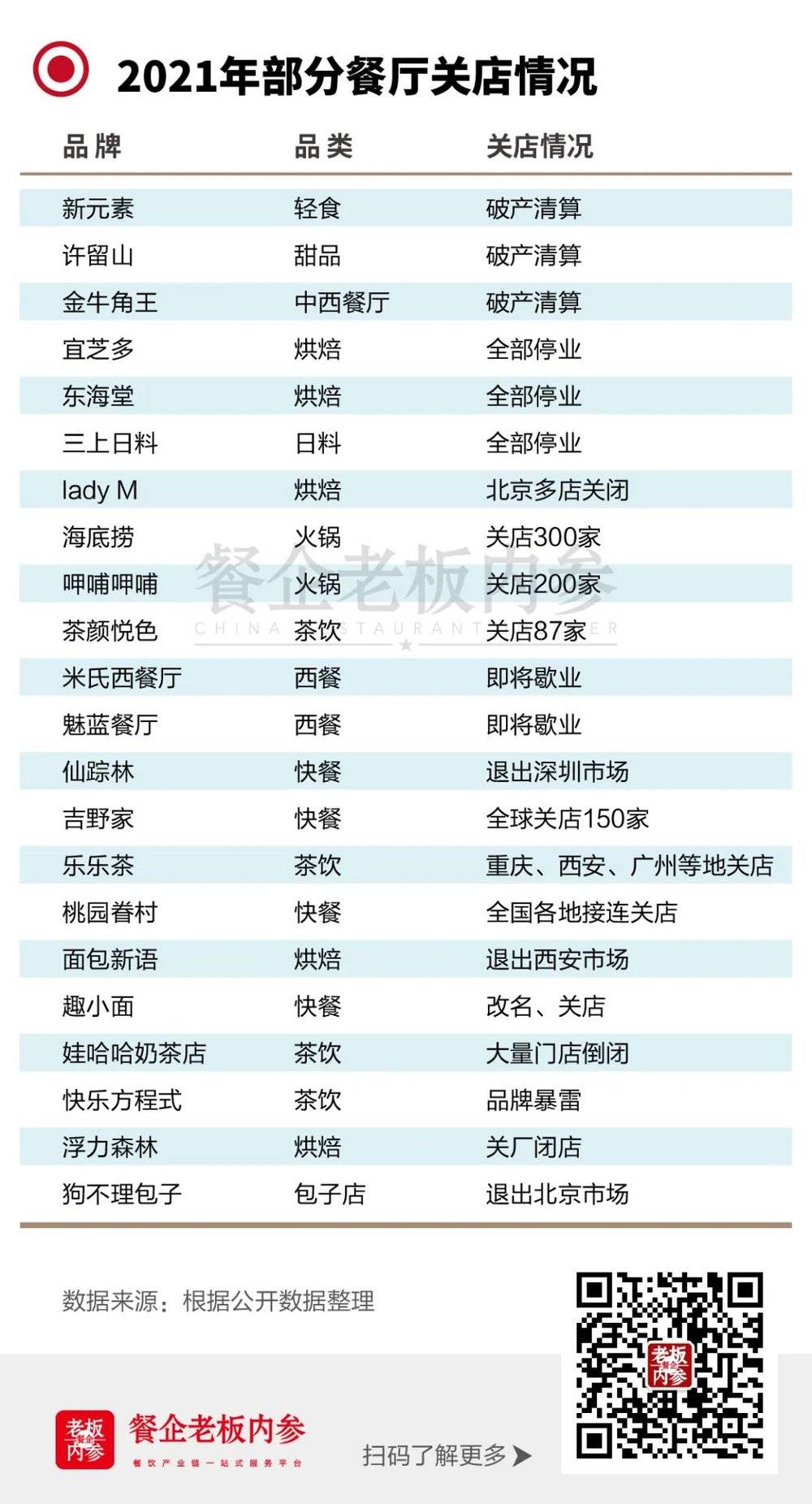 附:2021年部分餐厅关店情况: