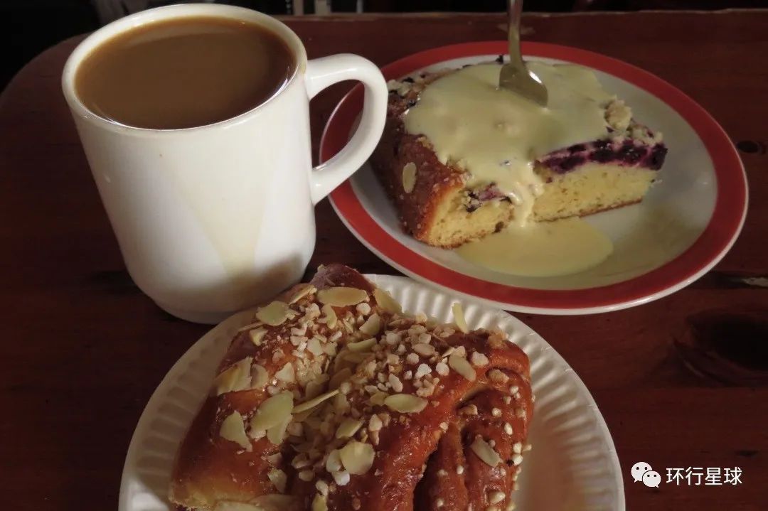 值得一提的是,在短暂的溜达之后,我们在周围的树林里发现了一幢小木屋,这里似乎是当地人喝下午茶、聊天的根据地。室外有人烤火,说着我们听不懂的语言,但一切平静而祥和。经过一上午寒天冻地的洗礼后,一杯咖啡和一块蛋糕让整趟旅行变得回味无穷。