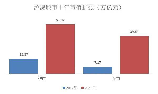 数据显示,沪市2012年-2021年,市值复合增长率14%,深市市值复合增长率20%。