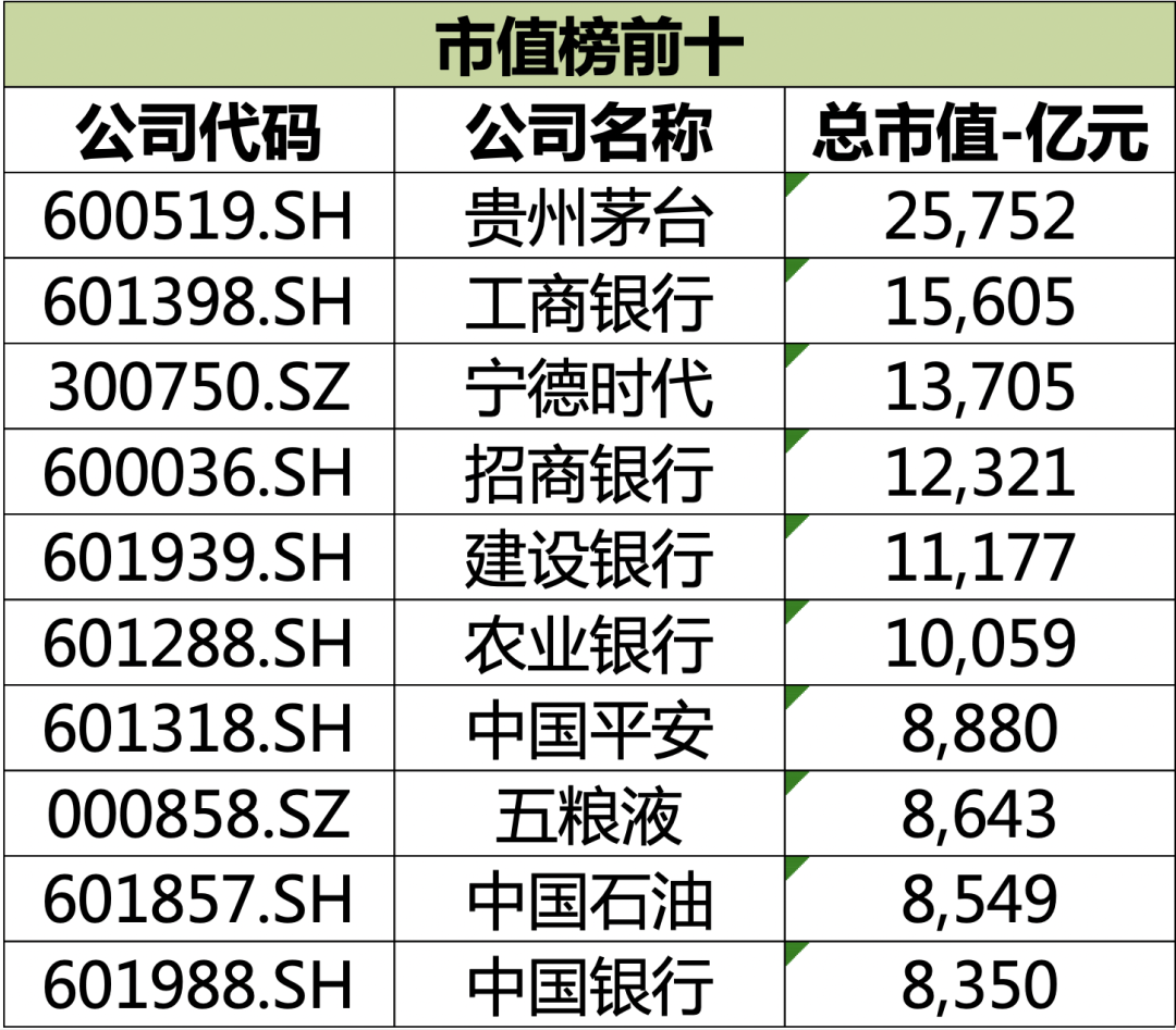2021年市值榜前十,贵州茅台依然高居榜首;金融股依然霸占前十,10占6。