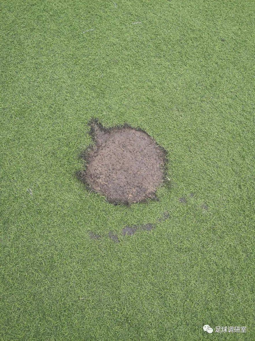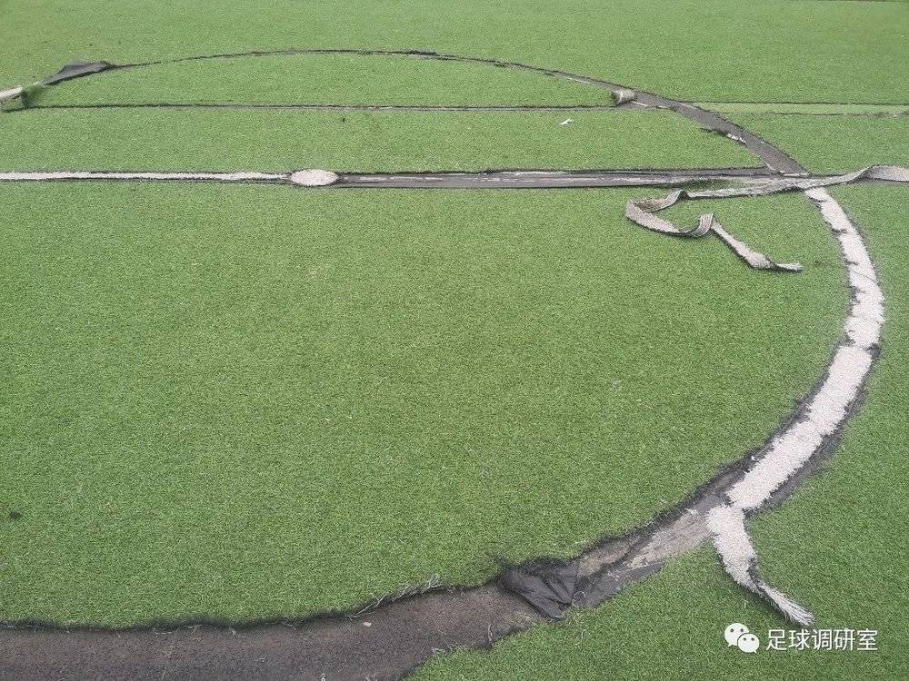如图所示,球场质量十分糟糕,没有防滑的橡胶颗粒,没有缓冲垫,场地坑坑洼洼,草皮各处都有不同程度的掀起和损坏,南山足球场也被当地球友戏称为“南山溜冰场”......