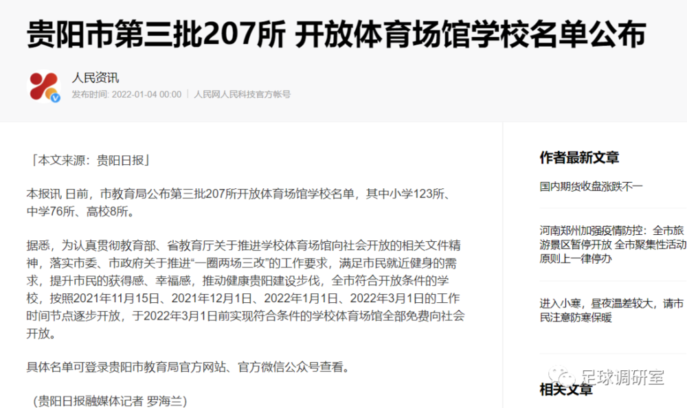 贵阳市大部分学校的体育场馆已经向社会开放