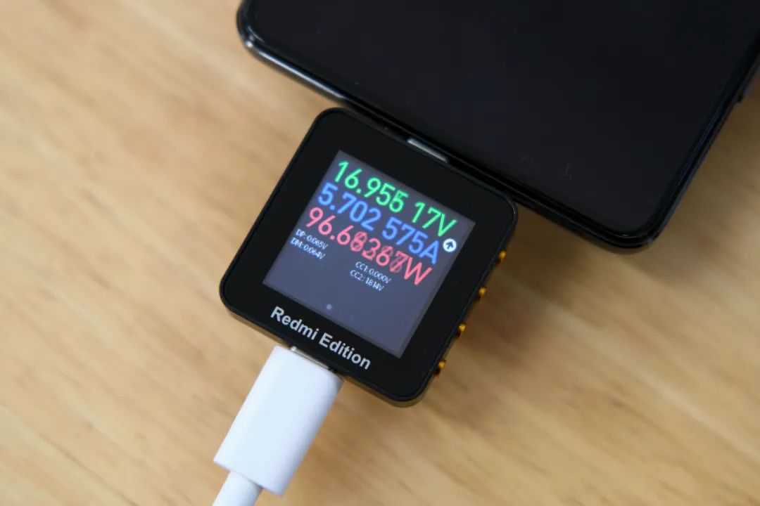 实测熄屏状态下 19min 内可以从 1% 充至 100%,熄屏状态下峰值功率在 96W 左右。