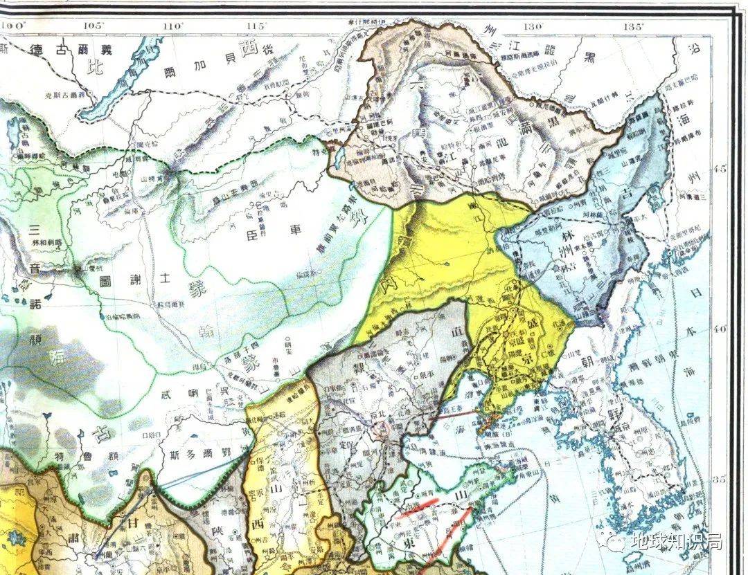 与蒙地不同的是,东北三将军在清朝灭亡前完成了改省(图:《民国初年分省精图》)▼