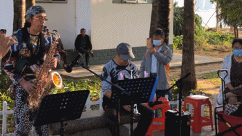 这是一组配备了小提琴及曼陀林的歌唱组合,现在民众随时可以加入慢舞。我真正感受到一种被碾压的恐惧。为什么!?为什么每个人都那么厉害!难道以后没有一门才艺都无法落户三亚了吗!!