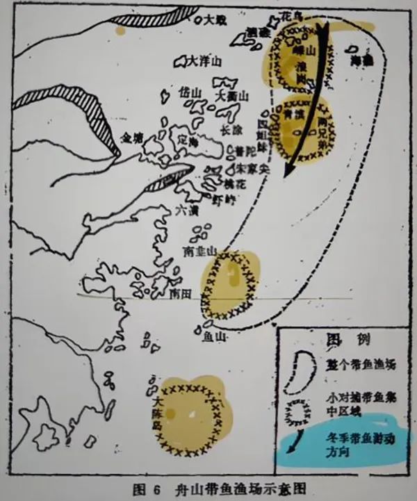 舟山渔场“冬汛”带鱼的洄游路线(图片来源:《舟山渔志》)