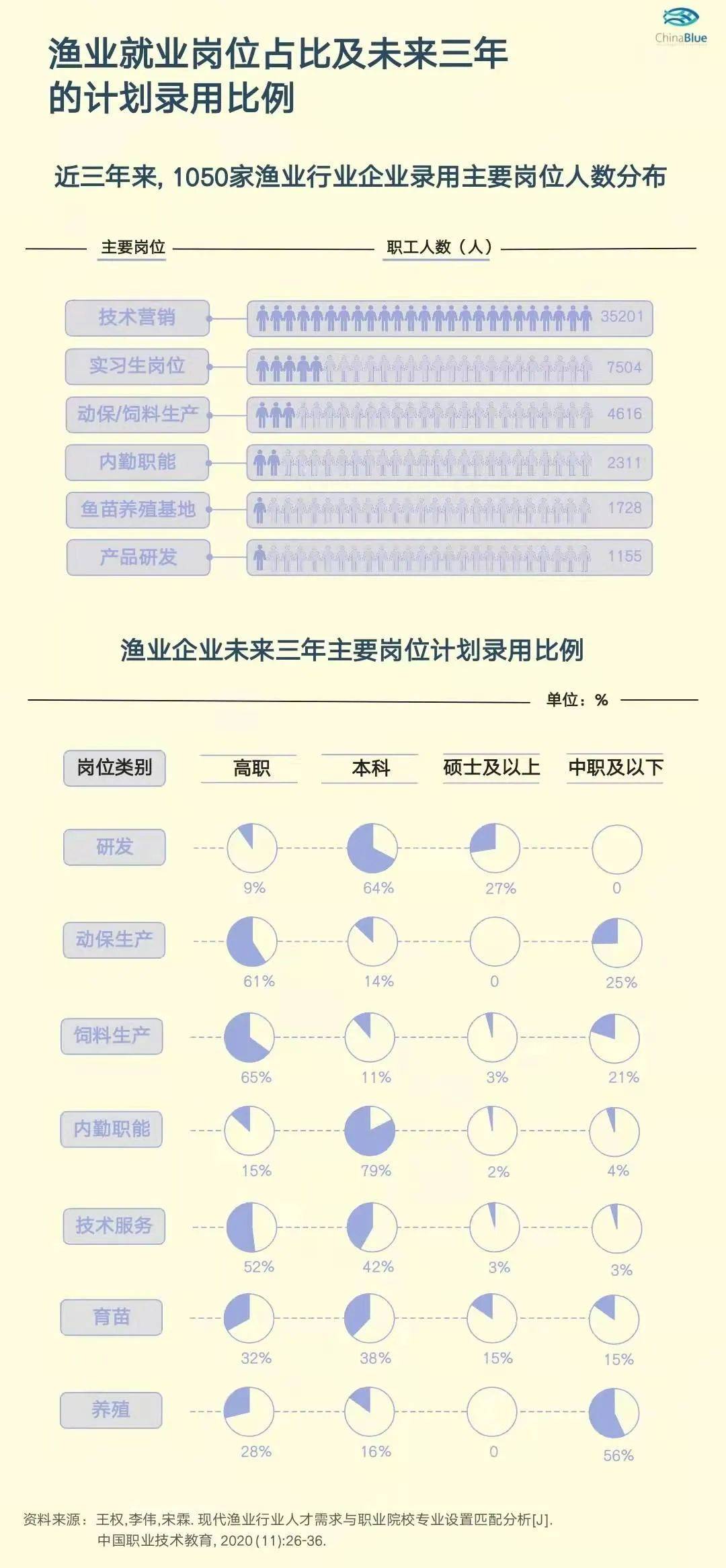 实际上,即便是疫情以来,“1004个岗位抢200个渔业(水产)毕业生”、“近万个岗位抢几个渔业 (水产) 毕业班”的新闻也屡见不鲜[12][13]。那么,渔业(水产)毕业生都"挑拣"到合适的理想的工作了吗?