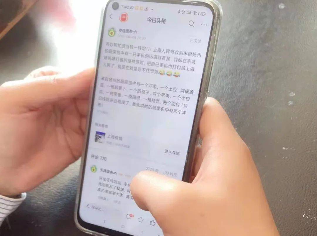 当时我家判断,丢失的手机可能就是在打包的时候不小心落在保供包里了。我堂姐还在帖子里调侃我,说“把手机打包给上海人民,我现在就忍不住想笑”。