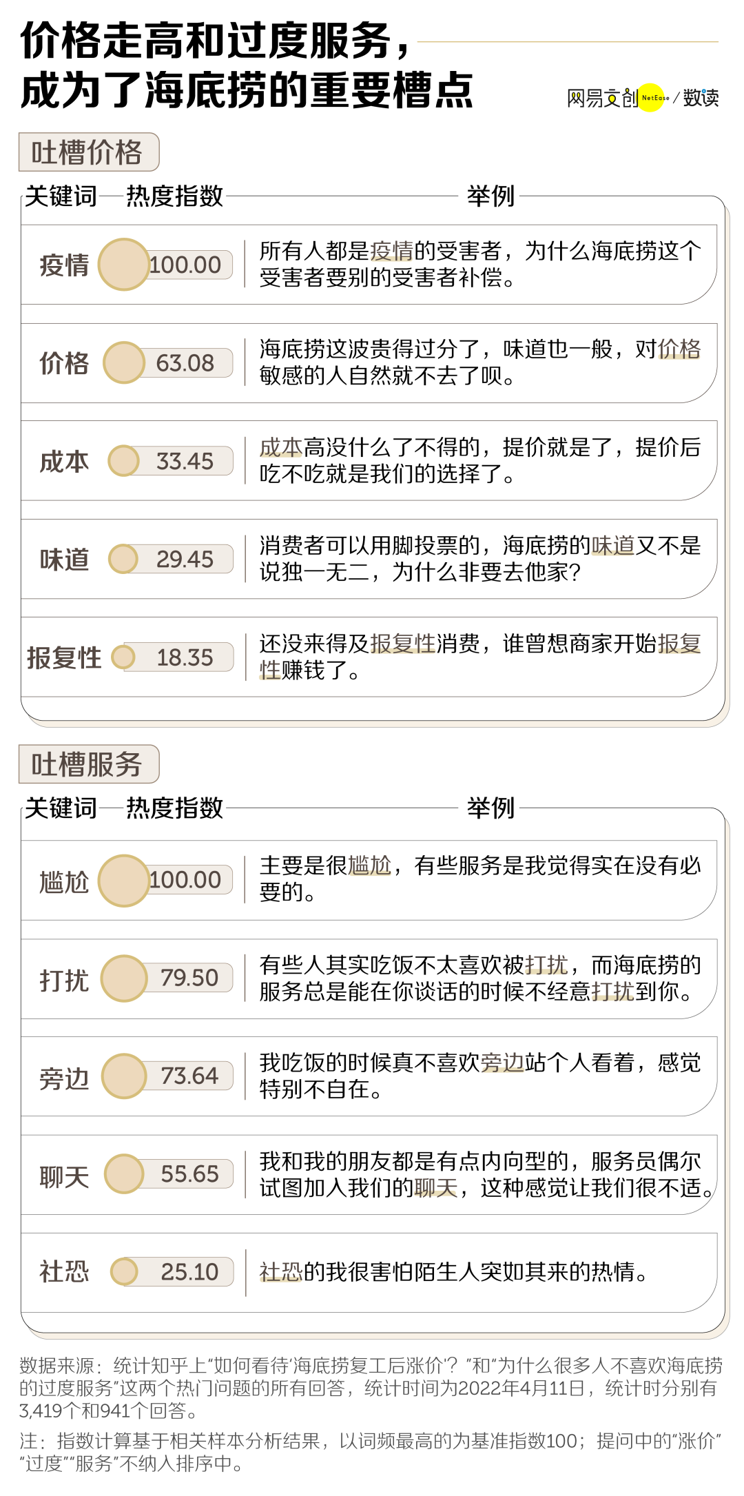 还有更多细碎的时刻,游荡的、殷勤的海底捞服务员做出的入侵私人边界的举动,会让食客感到浑身不自在: