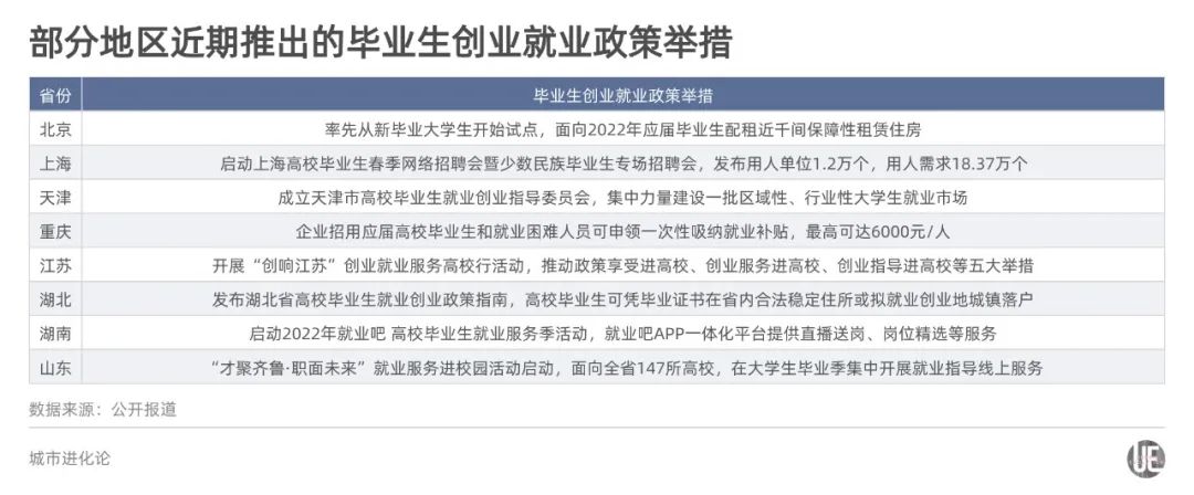 又比如广东,近日出台了《2022年广东省高校毕业生就业创业十大行动方案》,力争全省应届高校毕业生毕业去向落实率7月底达70%以上、年底前达90%以上。