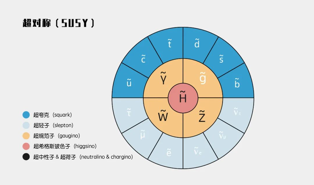 上个世纪六十年代,物理学家首次提出了超对称理论,并在七十年代得到了广泛的发展。超对称是标准模型的扩展,它假设我们熟悉的每一个已知的粒子都有一个更重(但尚未被发现)的“超伙伴”。比如电子(electron)的超伙伴是“超电子”(selectron)。