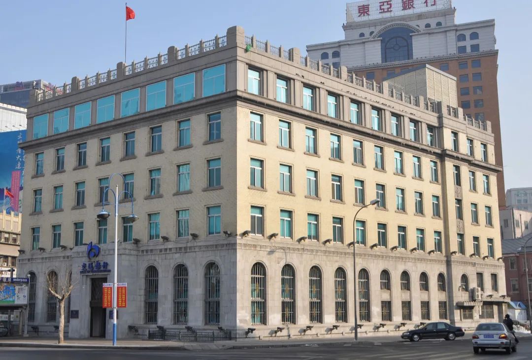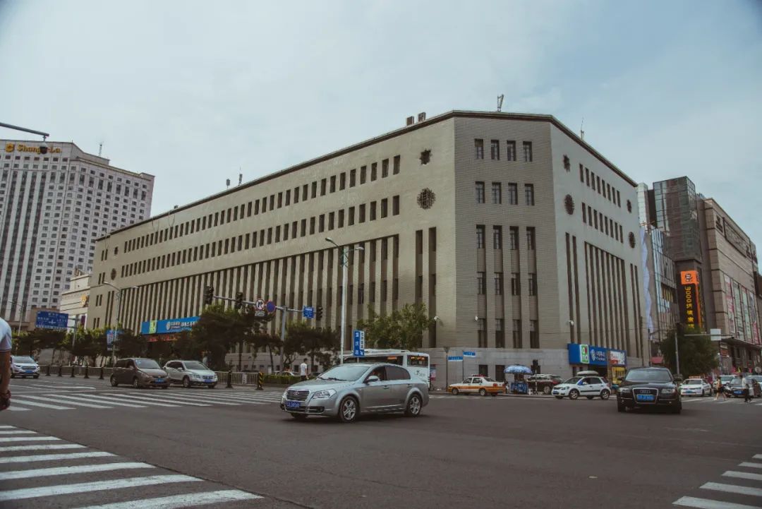 在古典向现代过渡阶段还有一类建筑,长春、沈阳和大连都多有出现,就是钢筋混凝土的美国式办公大楼,这类建筑经常呈L形的大方盒子样出现在街角,给人一种摩登时尚的感觉。