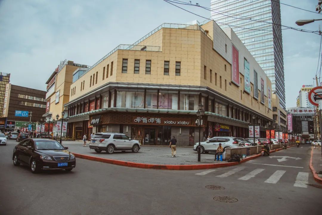 长春大街上老建筑和新建筑对比,上图为日本建筑,下图为长春新商场活力城,可以看到建筑的玻璃设计风格有些许关联