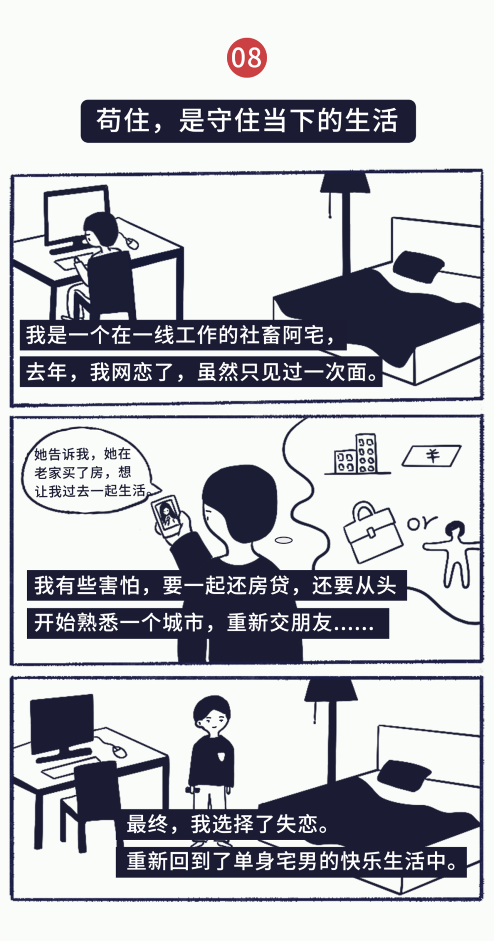 换用更通俗一些的说法——越来越多的年轻开始选择“苟住”,避让、服软,是在危机发生时保存自己,是在摇晃的现实中寻得一点安全感。苟住是从生活中推导出的一种柔的理性,也是在严冬生存的一种折中。