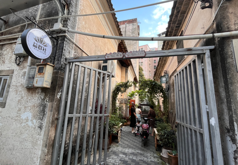 除了做服务于城中村居民的公益项目。益群社的三间老房,以及房前布置得颇有古趣的小巷,常年对村内居民开放。“阿姨们经常带着小宝宝,来荡荡秋千,逗逗小鱼”。