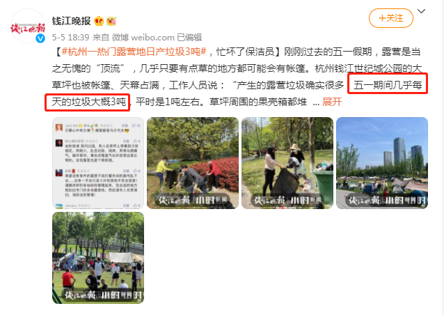 同样遭此待遇的,还有广东惠州高洋尾海滩和广西玉林樟木河滩,星星点点的垃圾布满现场。对远郊野外下手也就罢了,他们甚至连城市公园都不放过,杭州钱塘江的公园日产垃圾竟达到3吨,南京滨江公园的草坪因露营失火。