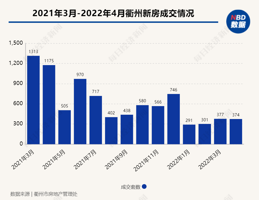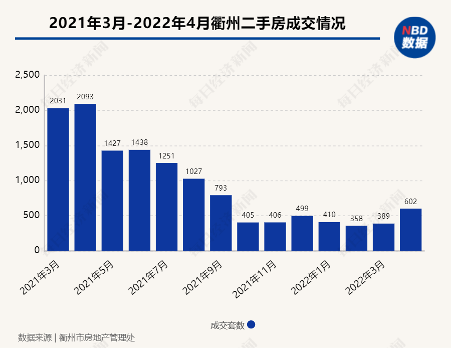 据衢州市房地产管理处数据,今年4月,衢州新房成交374套,环比下跌0.8%,同比下跌68.2%;二手房成交602套,环比增长55%,同比下降71%。[5]