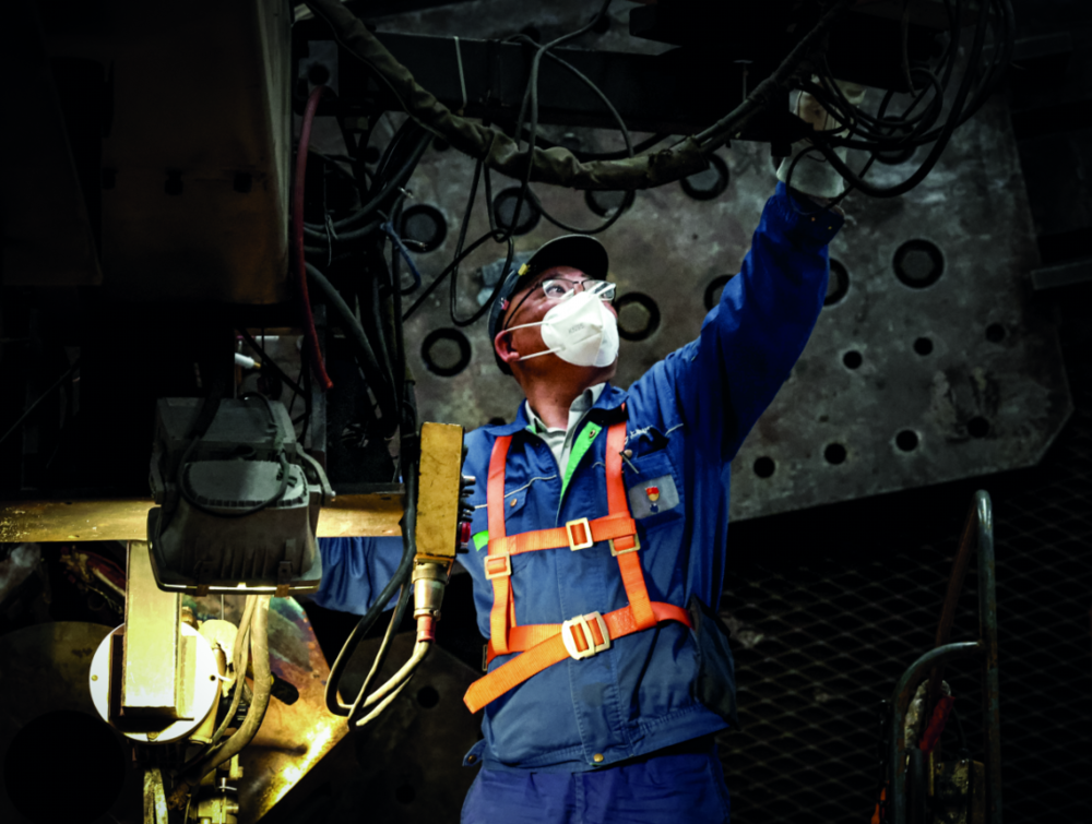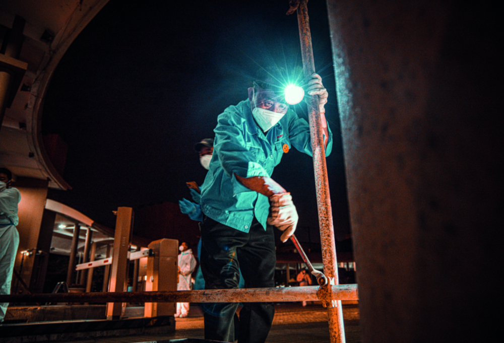 2022年4月23日,上海电气核电集团有限公司的工人在车间工作。4月下旬,上海电气集团股份有限公司在确保企业防疫形势安全可控的前提下,以“闭环生产”模式,力保重大项目,做好防疫生产“两不误”。图/新华