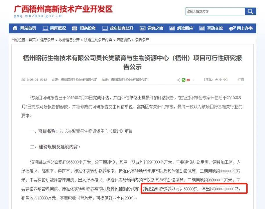 从上图可以看到,这份可行性报告被制作于2019年。当时昭衍新药自己预计,梧州的项目每年能出栏8000到10000只猴,销售收入1亿元。