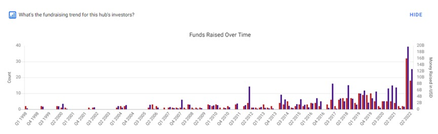 另外,2022Q1位于硅谷的投资机构融资也非常积极,超过2021年的总和。