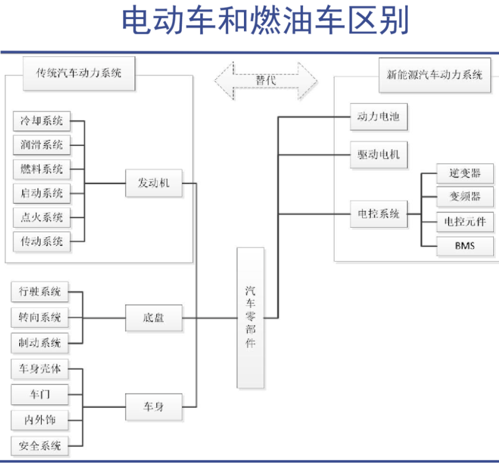 中国之所以新能源车增长这么迅速,关键在于新能源车与传统汽车在动力系统上的差别: